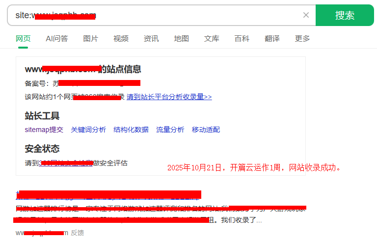 2025年10月21日,網站360搜索收錄網站成功