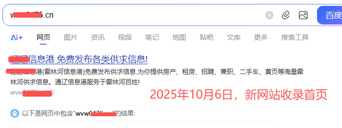 2025年10月6日,新網(wǎng)站通遼信息港百度收錄首頁
